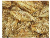 【原材料】 いわし、三温糖、金胡麻、澱粉分解物、水飴、醤油(本醸造)、魚醤、清酒、 魚介エキス、オリゴ糖、酵母エキス、香辛料、(原材料の一部に大豆、小麦を含む) 【栄養成分表示】(100g あり) エネルギー447kcal たんぱく質37,4g 脂質16,2g 炭水化物37,8g ナトリウム540mg カルシウム930mg |