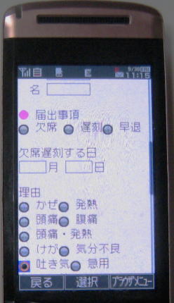 | 商品の特長 | 欠席や遅刻の連絡を24時間いつでも学校が受け付けるシステムです。 <保護者の方> どんな携帯電話からでも、何時でも、どこからでも、生徒情報や届出事項を 連絡できます。 <管理者(先生)> 学年別、クラス別の出席状況をいつでも、自動的に記録・印刷できます。 生徒の指導に役立ちます。 |